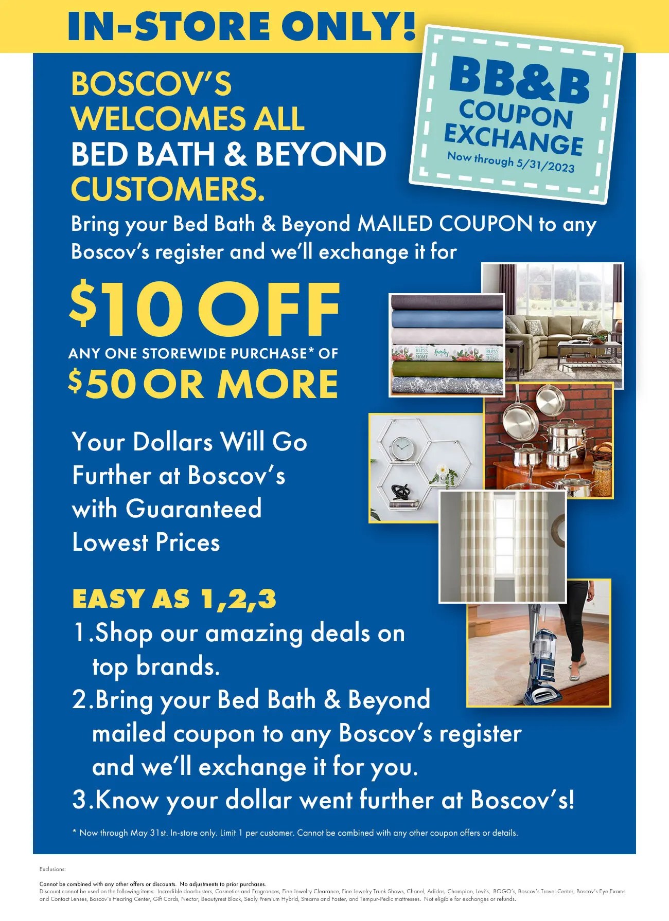 Save at boscov's with 50 active coupons & promos verified by our experts. Save every single day with slickdeals. When you sign up for the boscov's newsletter or text alerts, you'll get a code for 10% off your. All coupon content is created by marie claire. Choose from 11 boscov's coupon codes in january 2025.