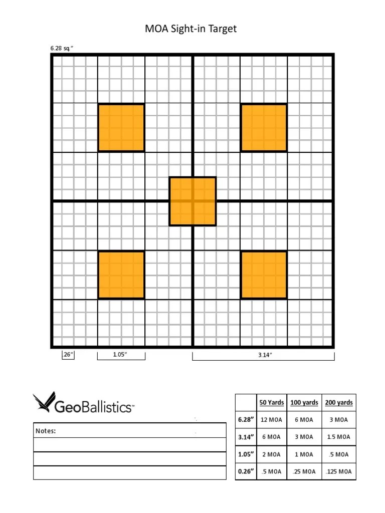 25 Yard MOA Paper Shooting Target With 1/4 MOA Adjustments 8.5x11 inches