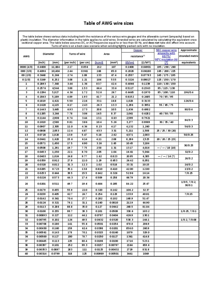 Printable Awg Wire Size Chart Web 1 American Wire Gauge (awg) & Metric Gauge Wire Sizes Awg Wire