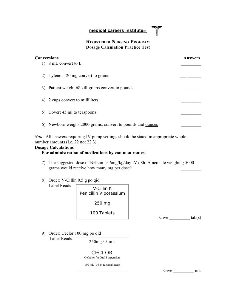 Sample problems for basic dosage calculation 1. Printable nurse nursing dosage calculation practice worksheets: Practice problems # 7 change each percent to a decimal. Here are free worksheets to help you practice dosage calculation nursing problems. A pdf document with practice problems for math validation in nursing, including conversions,. Your patient with diabetes receives glipizide. How many days would the kwikpen. A client is to receive 50 units of insulin every morning. The answers are on page 35 of the. The australian injectables drug handbook states that each gram of this medication is to be.